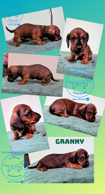 Thank you for your interest in Invading Dachshunds : AKC Miniature Wirehairs. We do not currently have any puppies available. I am planning our next breeding for the fall of 2026 with puppies ready to go in January of 2027 (depending on heat cycles). Lucille will be bred to an outside stud from HuNu Dachshunds, his name is Ace (Hunu Double or Nothing MW.) We will be expecting red, chocolate & tan, and black & tan with the possibility of those colors in wild boar. There will be a small chance some of the coats will be smooth. Applications are accepted anytime and my waitlist is open - those can be viewed by clicking the button below.